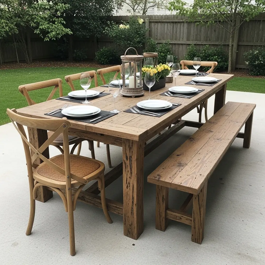 7. Distressed Outdoor Dining Table Setup