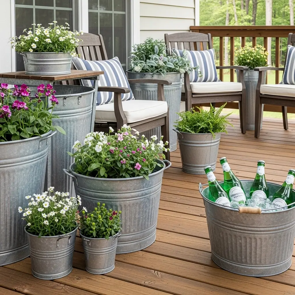 4. Galvanized Metal Planters and Accents
