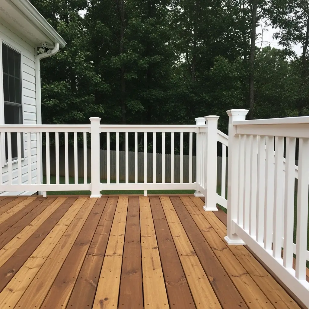 Creating a beautiful farmhouse deck starts with the foundation, and nothing speaks to this style quite like natural wood decking paired with crisp, whitewashed railings.
