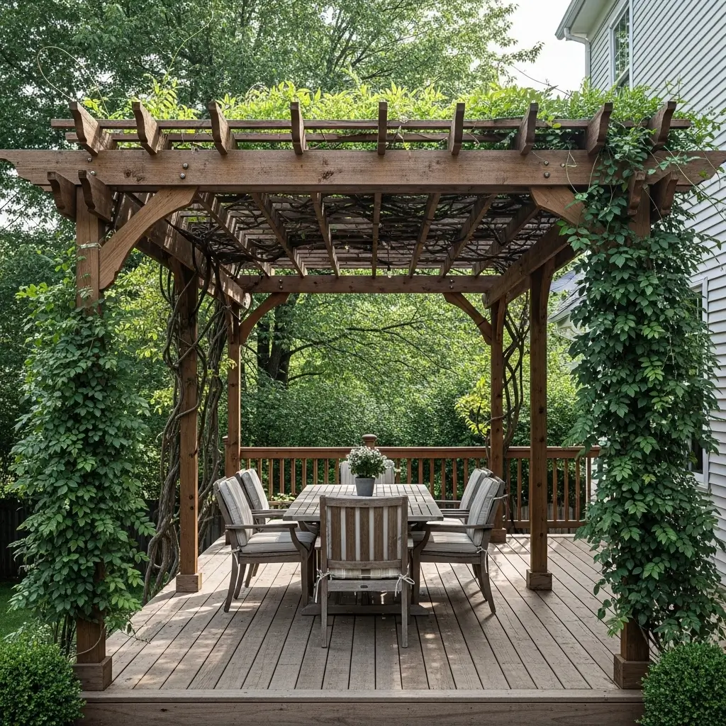 3. Rustic Pergola Covered in Climbing Vines