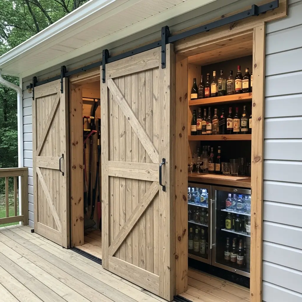 11. Sliding Barn Doors Revealing Storage or Bar