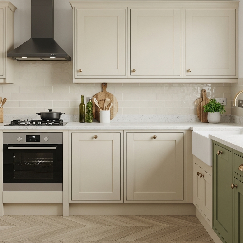Rich pale creams are quietly redefining modern kitchens. Warmer than beige yet lighter than taupe, these clotted-cream tones add depth without heaviness. They pair beautifully with muted butter yellows, mossy greens, and earthy green-browns, creating layered, sophisticated neutrals.