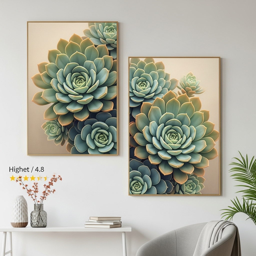 Botanical canvas prints bring a calm, refreshing presence to any room, especially vibrant succulent sets like “Brilliant Succulents I/II” by Norman Wyatt Jr. Their layered greens and soft golden tones create a soothing harmony that gently transforms a space without overwhelming it.
