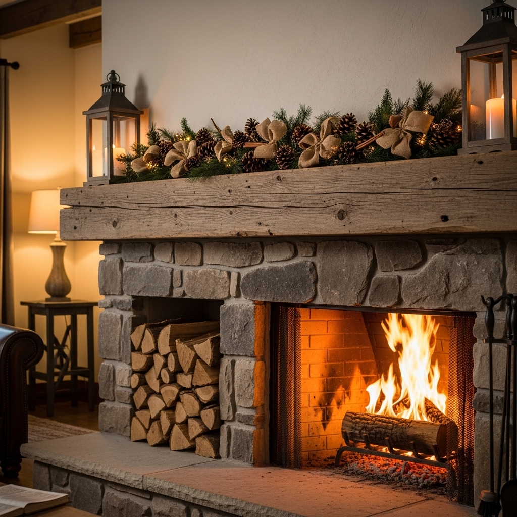Embrace natural materials like reclaimed wood mantels, rustic lanterns, and stacked firewood in your fireplace design. Incorporate pinecones, burlap ribbons, and cinnamon sticks into garlands or wreaths above the mantel for a welcoming, country-style warmth.